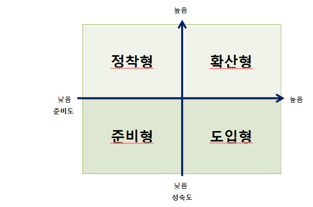 → 성숙도 수준에 따라 도입단계, 활용단계, 확산단계, 최적화단계로 구분